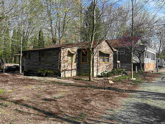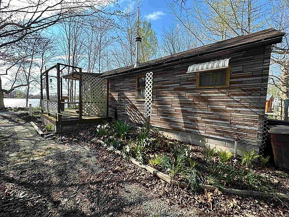Escape to a haven of tranquility with this charming primitive lakefront home. Nestled amidst the lush greenery and sparkling waters, this rustic abode offers a unique opportunity to embrace the simplicity of lakeside living. Far removed from the chaos of urban life, this property beckons those seeking solace and connection with nature. One bed ,One bath and on a DOUBLE LOT this home runs off a wood burning stove that over looks the vast waters of Hogback lake!Hogback Lake is 146 acres and great for fishing, pontoon rides, kayaking, canoeing, and even connects to other lakes via Pigeon River! Come see all the possibilities today!