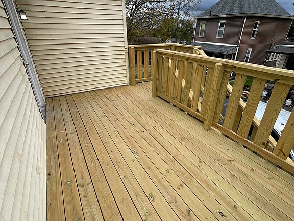 -Nice relaxing deck comes off the second floor entrance with steps leading down to a parking spot.