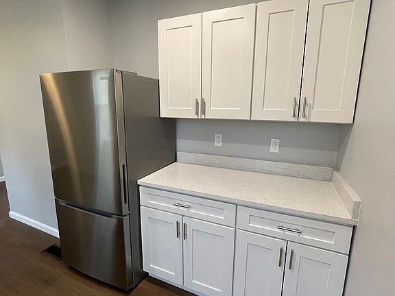 White pearl quartz countertopsNew roofRecessed lightingSoft close drawersTile floorCentral air conditioningRelaxing deck