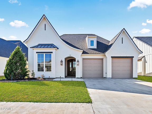 Enjoy a $10,000 price improvement, plus the builder is offering a 2-1 interest rate buy down OR $10,000 to use toward your closing costs, furniture, or anything else you need!This breathtaking new construction home, crafted by Legendary Contractors and designed by the team at Inspire by Legendary, is a true masterpiece. With over 2,600 square feet, this stunning residence boasts 4 spacious bedrooms, 3 luxurious bathrooms, and an adaptable office/flex space tailored to your lifestyle.In the heart of the home, the kitchen will captivate you with its exquisite quartzite countertops, natural stone backsplash, and flush inset cabinets. Discover the hidden pantry, complete with butcher block countertops--perfect for stowing your favorite countertop appliances.The inviting living room features a gorgeous antique pine mantle that harmonizes beautifully with the home's neutral beiges and whites. The office/flex room is a standout, adorned with stunning antique doors and designed to be a universal space that adapts to whatever you need it for.Retreat to the primary suite, where vaulted ceilings and a striking accent wall create an atmosphere of elegance. The ensuite bathroom, featuring luxurious porcelain tile, exudes sophistication and connects seamlessly to the expansive primary closet, which leads to the thoughtfully designed laundry room--truly a game-changer!Each bedroom is uniquely charming, adding character to the home. With 14-foot ceilings and visual comfort lighting throughout, every corner of this residence is infused with warmth and style.Set on a 10,850-square-foot lot, this home offers ample space for your future swimming pool. Legendary Contractors has also planted mature juniper trees, enhancing the outdoor charm.Don't miss your chance to make this incredible new build your own. Your ideal home awaits at 110 Abercrombie Way in Langlinais Estates!