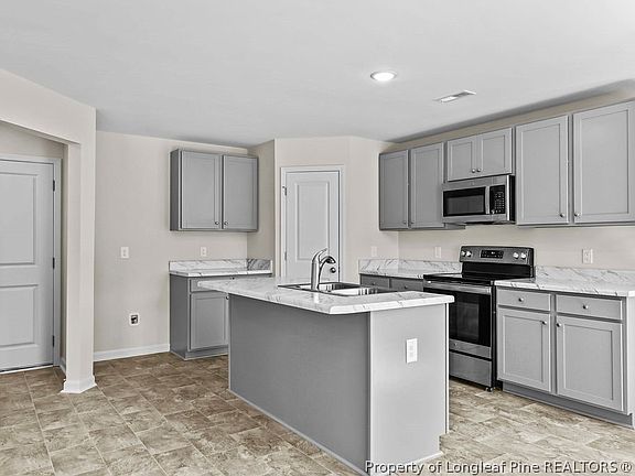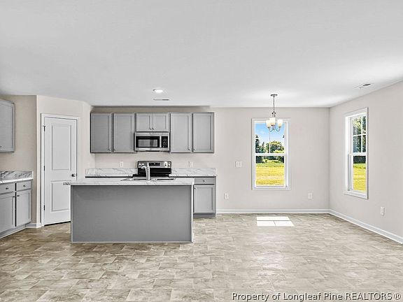 The main level is an open concept layout that creates a large gathering space with family room that opens to spacious kitchen and dining area. Kitchen has plenty of counter/cabinet space along with an island. All four bedrooms are upstairs including large owner's suite with double vanity and large walk-in closet. Three additional bedrooms upstairs. Over half acre lot (.56 acre) and conveniently located close to downtown Dunn and I-95.