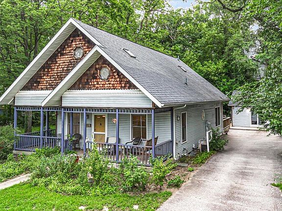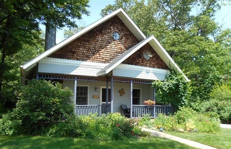 One charming Home and two cute quaint studio Cottages surrounded by 2 lush lots for a total of 5 bedrooms and four bathrooms only three blocks from beautiful singing sand Sheridan Beach on Lake Michigan. This is really a unique property that could easily be used for a short/long term rental property or a compound. The main Home with Front Porch boasts 3 bedrooms, 2 full baths and huge back deck featuring spacious seasonal shower, outdoor dining and fire pit areas. Separate 1 B.R. guest cottage and artist studio adjoin backyard deck. All 3 dwellings have heat and A.C. Main Cottage has 2 F.P.'s designed and installed by well known Midwest Artist, Dale Landsman, in 1991. Skylights and beautiful tiles make for a charming kitchen with windows galore. Grass side lot allows plenty of space for bocce, croquet, volleyball and badminton games or future pool. A short distance to Lake Michigan, Zoo, Casino, restaurants, Downtown Art District and Washington Park. Main House first floor has 2 bedrooms, full bath and a fireplace. Main House 2nd floor has a king sized bedroom, sitting area and full bath. Guest Cottage has 1 bedroom,3/4 bath, & kitchenette. Artist Studio has 3/4 bath, kitchen, skylights, and ceiling fans. 400 sq.ft. storage shed on property,too. Easy commute to Chicago and South Bend via South Shore Double track train. Turn key property ready for you ! Must have confirmed appt at convenience of rental availability.