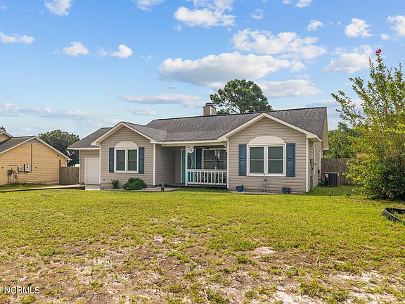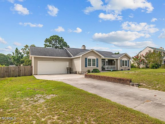 Welcome to the beautiful waterfront community of Kingsbridge on Queen's Creek in Hubert! Nestled inside this charming community, you will find this beautifully maintained 3 bedroom, 2 bathroom home. Upon entering the home, you are greeted with an open living space with vaulted ceilings, wood burning fireplace, fresh paint, laminate flooring throughout and plenty of natural light. The kitchen features stainless appliances, tile flooring and an adjoining laundry closet with shelving. Washer and dryer are included with this gem of a home! This home also features 3 spacious bedrooms, 2 car garage, a large deck and fenced yard. This home is located in a waterfront community with a gated boat launch, only for community access. There is even access to fish off of the launch to catch plenty of fish and go crabbing off of the beautiful Queen's Creek! Close to military bases, schools, downtown Swansboro and more! This home will go fast. Schedule your showing today!