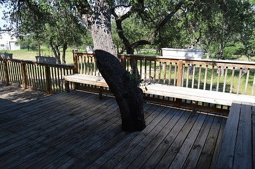 Epitome of Hill Country living! This 3/2/2 is situated in quiet, secluded Guadalupe Ranch Estates in beautiful Hunt. Over 6 acres of gently sloping terrain to call home! House, detached garage & barn all fully high-fenced w/ 2 access gates. Remaining acreage outside fence untouched for privacy. Main yard dotted with mature oaks. House features open concept, split floor plan w/ bonus front room. Oversized deck off kitchen for entertaining! Kit features WALK-IN pantry, Fridigaire Gallery stove. Master boasts his/her walk-in closets, sinks & toilets. Also jetted tub, plantation shutters & walk-out deck for AM coffee. Double-sided fireplace in master & great room. Tile floors for easy clean. Atrium provides abundant natural light. Come enjoy the wildlife & peace & quiet in the country!