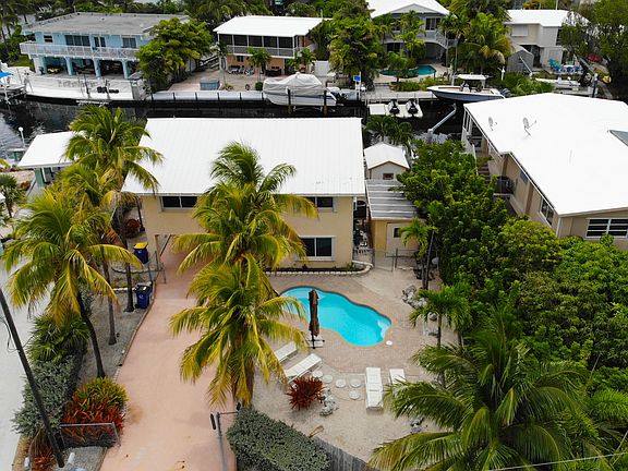 Fantastic Islamorada location in the Florida Keys. CBS canal front home with metal roof and inground pool in Plantation Key Colony. This updated home has 2 bedrooms and 2 full baths upstairs with a light filled open living area and screen porch overlooking the canals. Granite countertops in both kitchens. The first floor has a separate legal 1 bedroom apartment and a full bath with a bonus room that could be utilized as a 2nd bedroom or office. 75 ft concrete dock with boat lift and davits. Ocean access nearby through Tavernier Creek. This entertainers yard has a canal-side chickee hut and hot tub and a saltwater inground pool surrounded by paver patio in front yard for relaxing and cooling off.