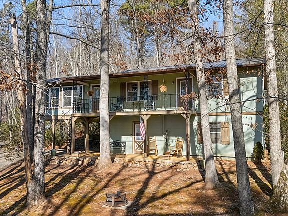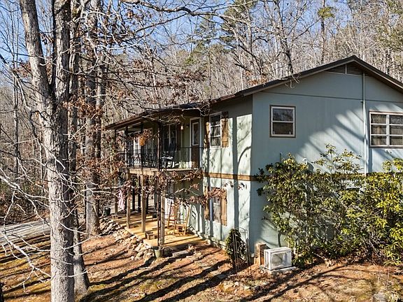Sweet Franklin NC mountain cabin just moments from the center of town. This 2 bedroom, 2 bath home is tucked away in a quiet setting surrounded by mature trees, and perennials. It has a nice winter view and an easy access LEVEL drive and yard! Plenty of parking for you and your guests. The home has 2 spacious decks, 1 upper & 1 lower. There is a lower level that has a good size family room, a mini-kitchen, full bath, laundry facility and a large workshop. This lower level is accessible from both inside and outside of the home. The main level has a stunning custom Sun Room with windows all around, heated. The main level has 2 bedrooms and 1 bath, a real cute kitchen with a breakfast bar and electric appliances. Lower level heat is electric, upper level is a Mini-Split and baseboard.new metal roof 2025!