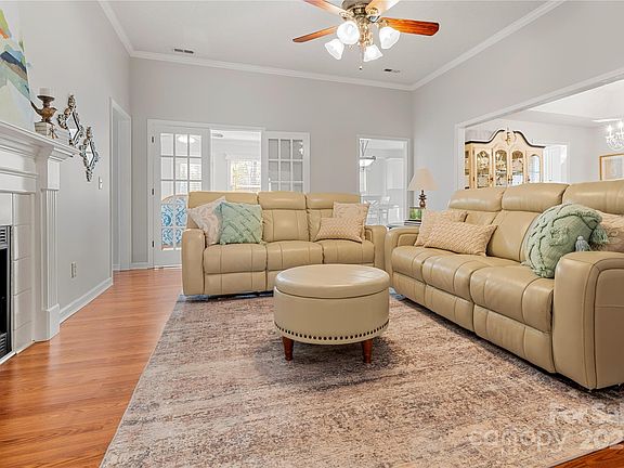 Welcome to this cozy ranch nestled in a peaceful, wooded Fort Mill setting. With no HOA, you’ll enjoy freedom and privacy in a backyard that backs to serene woods—perfect for unwinding or entertaining. Inside, the open-concept living room makes a statement with a gas fireplace and plenty of natural light. The updated kitchen impresses with crisp white cabinetry, porcelain tile, quartz countertops, ample lighting, and some new appliances, blending function and flair. The spacious primary suite features a large bath with separate soaking tub and walk-in shower, double sinks and spacious vanities, plus an organized walk-in closet. The home features a split floor plan with secondary bedrooms and a full bath on one side of the home. A large dining room could also function as a flex space. Step into the stunning all-seasons sunroom overlooking the backyard—your year-round retreat for morning coffee or evening relaxation. Need a place to park an RV, trailer or boat ? There's an extended drive and parking pad in place. A very spacious back yard is great for entertaining. Deck and firepit are inviting! Workshop will convey, which is equipped with power and a ramp! This home and property have plenty of storage options, with a large floored-in attic space, walk-in closet, large laundry area with cabinetry and storage in outbuildings. Located on a peaceful, wooded lot, updated with neutral colors and a prime Fort Mill location close to top-rated schools, shops, and dining—this home defines comfort and convenience. No HOA. Schedule your showing now in this affordable gem of a neighborhood.