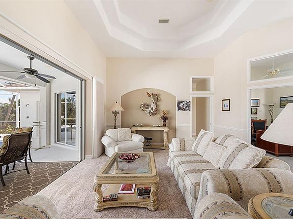 ELEVATED & ELEGANT featuring a 2021 ROOF + 2025 HVAC | This TURN-KEY FURNISHED, custom-built pool home by Newport Homes offers a perfect combination of elegance and functionality. Nestled on Amberjack Creek, the property boasts SERENE VIEWS OF THE CANAL AND PRESERVE while being strategically situated on high and dry land, eliminating concerns about flooding. The home’s interior features an abundance of natural light that fill the high ceilings through oversized windows and sliding glass doors along with a thoughtfully designed floor plan that is sure to please. An impressive great room with tray ceiling welcomes you along with a formal front dining room and a FORMAL OFFICE. The kitchen is stocked with everything you could possibly need in the cabinets and pantry and overlooks the breakfast bar, dinette as well as the back family room perfect for casual, everyday living. The primary bedroom is ample sized with views and access to the lanai, dual closets and an SPA-LIKE ENSUITE BATHROOM that features a soaking tub and roman shower. Two more bedrooms tuck down a hallway on the opposite side of the home with an oversized guest bathroom. The highlight of this property is the SHOWSTOPPING OUTDOOR POOL AREA with expansive lanai deck for relaxing or entertaining all protected by a screened enclosure and boasting an elevated spa with waterfall spill over and convenient outdoor pool bath. Heated for year round enjoyment, the saltwater pool and spa provide an incredible place to unwind in this tranquil setting. For fishing enthusiasts, shallow draft waters allow access to Coral Creek, offering opportunities for outstanding backwater fishing and convenient access to the Gulf of Mexico. Located just minutes from the famous town of Boca Grande and an array of charming shops and restaurants, this home is perfect for enjoying an active Florida lifestyle. Explore the nearby biking and walking paths, kayak or paddleboard at Don Pedro State Park, and take advantage of close proximity to golf courses, marinas, and world-class beaches! Additional features to note include the OVERSIZED GARAGE (almost 30 feet wide for all your storage needs!), interior laundry room, 4 sets of electric HURRICANE ROLL DOWN SHUTTERS, wired security system, central vacuum, exterior lawn sprinkler system and 2025 WATER HEATER.