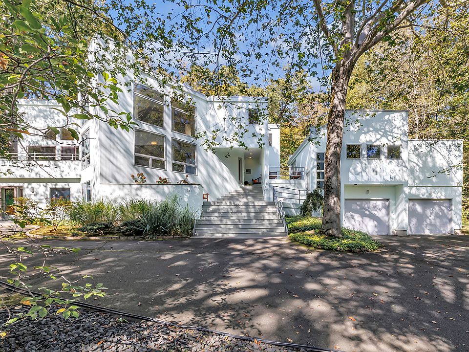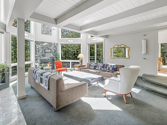 Tucked into the scenic hillside of Hamden's sought-after Blue Trail neighborhood-on a street lined with architecturally distinctive homes-this stunning, one-of-a-kind contemporary offers the perfect balance of design, comfort, and natural beauty. A versatile floor plan and thoughtful updates make this home truly move-in ready. The first-floor primary suite provides ease and privacy, while the two-story living room impresses with soaring ceilings, a dramatic floor-to-ceiling fireplace, and walls of glass that frames tranquil woodland views. The gourmet eat-in kitchen is a chef's dream, featuring Sub-Zero refrigeration, Miele double ovens, a Jenn-Air gas cooktop, Miele dishwasher, and a large workstation sink-all set within a warm, modern design that flows seamlessly into the open living spaces. Upstairs, a loft-style family room offers flexible space for a home office, library, or media area. Two spacious bedrooms and beautifully renovated spa-like bath complete the upper level. The bathroom renovation (2009) includes an expanded layout with a 6-foot soaking tub, architect-designed custom cabinetry in quarter-sawn oak, new windows, hidden storage, a wall of mirrors, and Restoration Hardware fixtures-a thoughtful blend of craftsmanship and style. A walk-out lower level provides a bright, private area ideal for an office, studio, or au pair suite with its own entrance. Above the garage, a lofted area adds exceptional versatility-perfect for a gym, artist's studio, or additional storage outdoors, multi-level decks overlook 2.4 wooded acres of curated gardens that evolve beautifully through the seasons.With direct access to Sleeping Giant State Park trailheads and proximity to Quinnipiac University, Yale University, downtown New Haven, and major routes, 110 Blue Trail is a rare blend of architectural artistry, tranquility, and effortless modern living. Recent updates include Heil Central Air Unit (2019), Whole-House Generac generator (2019), Roth Oil Tank (2019), Well Pump, liner, water line, cap (2024), Hot Water Tank (2025), Exterior House Painting (2024) Newer Roof Main (2018), Flat Portion (2023) Dehumidifier in Crawl Space (2020) Nest Thermostats (2021) Electric Fireplace Insert (2023),