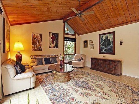 Just steps to the beach, this well-kept ranch home on a huge lot is a rare oasis of tranquility, art, & balmy Atlantic Ocean breezes. With a fantastic east-side locale in gated Ocean Walk, the house is built within an ultra-private courtyard, fully enclosed, with amazing island flora. Main rooms feature glass doors overlooking the pool, fountain, & artfully-curated tropical gardens. Vaulted wood ceiling in the living area adds to the Zen-tropic feel. An open kitchen with light cabinets & granite island combines with the family/sitting room for easy entertaining. The studio converts for guest space. Master suite with walk-in closet. Newer A/C, water heater & quality cypress wood will keep future expenses at bay. Walk, bike, jog, or swim on Jupiter's beaches from this wonderful gem of a home