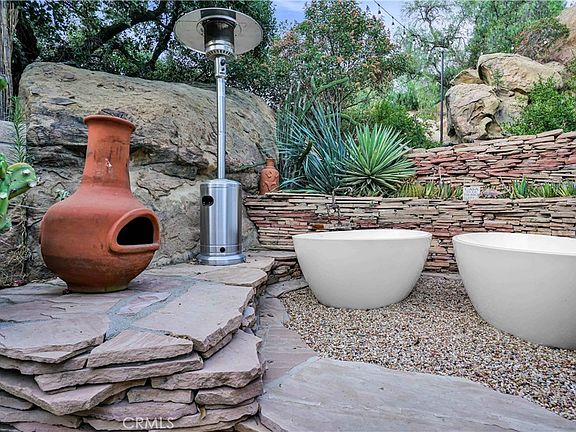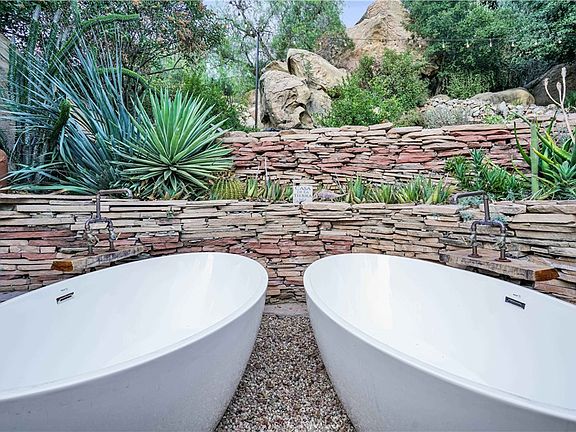 Rustic charmPrivate lotMature treesCalming waterfall featureCanyon and garden viewsStone pathsStunning natural surroundings