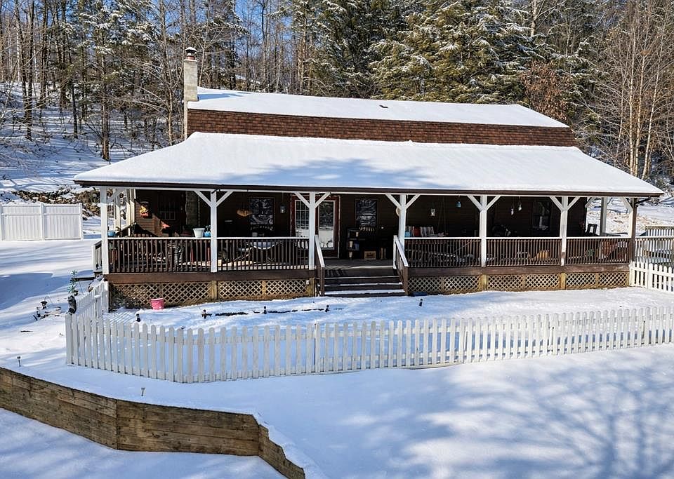 Custom-built 6-bedroom home situated on a private 16-acre setting offering a large yard and wooded acreage. Key features include a large kitchen and living space with hardwood floors throughout. A wraparound porch provides the perfect space to enjoy the natural surroundings and outdoor living. The property also features a peaceful stream running through the land, creating a quiet and scenic backdrop. A detached three-car garage adds excellent storage, with a framed apartment above already in place for future expansion, guest quarters, or additional living space. The large yard offers room to roam, garden, or entertain, while the wooded acreage provides privacy and recreational opportunities. This property is ideal for those seeking space, seclusion, and long-term potential in a tranquil setting.