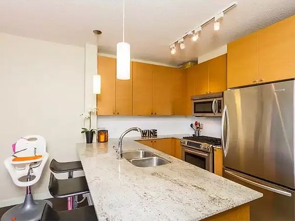 Living room has oversized windows letting lots of light in! Large deck offers expansive North East views of mountains & village. Dual access to deck from living room or master bedroom. High end amenities indoor pool, hot tub, sauna, squash court, gym, oversized lounge, media room, games room & more! Join this desirable community w/ future Evergreen line, Port Moody Community Centre, Rocky Point & Breweries
