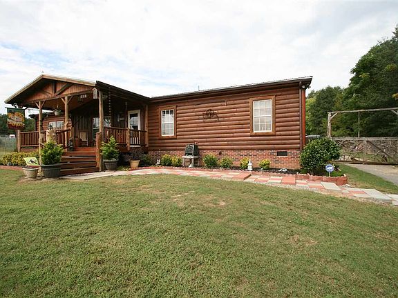 Log Cabin on 3/4 of an acre located in the desirable Campobello area! This mobile home has been detitled and completely renovated from the top to the bottom (inside and out) transforming it into a gorgeous cabin retreat. The owner works in the log cabin industry and has his own woodworking business. So nothing was spared and no corners cut when it came to remodeling this beautiful home. The front porch rockers are quite inviting on the 10x21 covered log porch. But step inside and fall in love with the cozy atmosphere and smell of log cabin living. The living and dining room are open to the kitchen giving ample space for family gatherings. The den lends even more space and offers a lovely rock fireplace, perfectly positioned in the corner of the room. The master suite boasts a walk-in closet with built-ins and the ultimate master bathroom with double vanity sinks, whirlpool tub with rock walls, and a separate shower. All bedrooms have custom closets and hand made interior doors. Now if you like entertaining or just pure relaxation, then step out the glass doors to the newly screened porch. A large covered deck extends off of this and then deck walk ways lead to the swimming pool with more wrap-around decking. This back yard retreat is totally fenced with gorgeous hand made entrance gates. Three workshop/storage buildings are at the back of the lot for convenience. And the owner will leave the small log cabin (dog house) if desired for a new furry friend. Much too much to mention, but a few extras are the new 20 yr metal roof, 6' privacy fence, all pine interior, hickory cabinets, and newer heat pump and water heater. A must see!