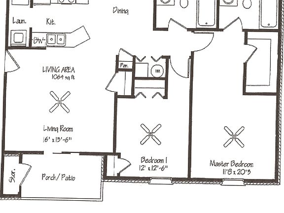 - Total interior livable area: 1,064 sqft