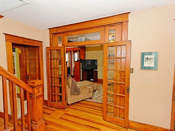 This Move in Ready Village home offers so much charm and character: high ceilings, built in cabinets, hardwood flooring and rocking chair front porch. Yet has recent updates:BOTH Bathrooms have been FULLY REDONE!, vinyl windows, kitchen counters, large back deck, fully fenced yard. The walk up attic and full dry basement are great for storage. There is a 2 car garage and paved space for 2 additional cars. Located walking distance to Collins Park, Schools, and Village Shopping. Agent is Owner and motivated!!