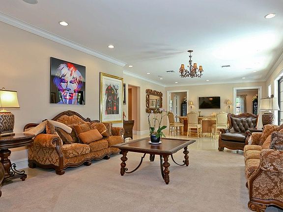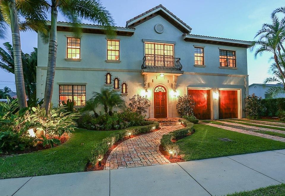 West Palm Beach, Florida - 'This 4 bedroom, 4.5 bath Mediterranean home was constructed in 2007 & located one house from the Intracoastal Waterway in the desirable ''South of Southern'' neighborhood in West Palm Beach. The home offers exceptional craftsmanship & design w/ every upgrade imaginable. Downstairs has travertine floors, 22' entry foyer, 10' ceilings, gourmet chef's kitchen w/ Viking Appliances, formal dining room & a 41'x 19' living room w/ a luxurious wet bar & French doors opening to a gas heated pool & two separate covered patios with gas lanterns. The upstairs contains 4 bedrooms & baths, two balconies, Brazilian cherry floors & an exquisite master bath with multiple shower heads. The outdoor area is lushly landscaped & has views of the ICW. The home is protected by impact window & doors throughout