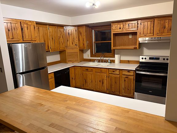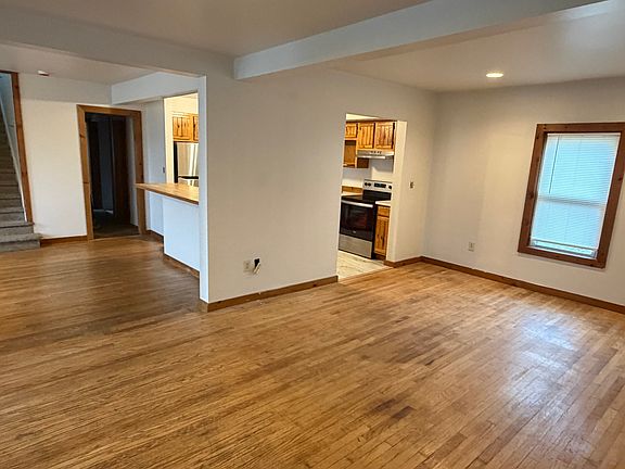 This spacious 4 bedroom, 2 full bath home is ready to be rented! Offering a downstairs open floor plan with a first floor bedroom and bath along with three more bedrooms upstairs including a master with a walk in closet. There's office space, 1st floor laundry hookup and plenty of storage and closet space. Hardwood with new kitchen and bathroom flooring downstairs with fresh paint throughout. The home offers a front and back porch, garage space for storage, a nice yard and is close to downtown. Owner pays water/sewer and garbage. Tenant is responsible for electric, oil heat and propane hot water. Lease is month to month. Tenant is responsible for maintaining the house including the yard with grass or snow cleanup. No smoking. Plenty of parking and yard for kids. Garage is only for small storage of outdoor tools or mowing equipment etc. and does not have parking.