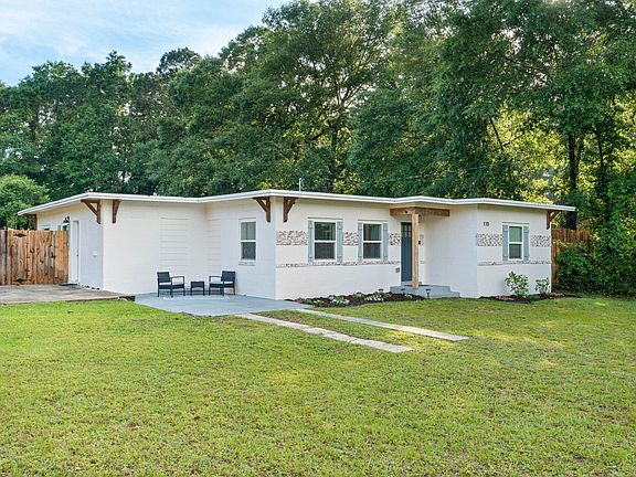 Welcome to 110 Butler Circle in Crestview, FL. This enchanting residence is a captivating blend of modern elegance and timeless charm. The manicured landscaping and inviting front porch create a warm and inviting atmosphere, setting the tone for the beauty that awaits.This spacious concrete block cottage was beautifully renovated in 2021 down to the tiniest of details. This home was completely gutted and built back new with numerous upgrades and extras. Starting with the exterior, there is a 2021 Roof, HVAC, and HWH. In addition, you can rest easy knowing the home has been completely re-wired with copper including service panels, outlets, switches, and fixtures. The house has also been replumbed in 2021 as well. This 4 bedroom 2 bath home is located on a spacious .47-acre corner lot, making it the perfect space for entertaining, storage, parking, or a pool. The interior of the home features LVP driftwood plank flooring throughout. The heart of the home, the kitchen, is a chef's dream come true with custom solid wood shaker style cabinets and shelving, granite countertops, stainless steel appliances, and a farmhouse sink. The living room is bright with natural light. The guest bathroom features stamped tile flooring with a vessel sink and quartz top. The master bathroom has a marble tile shower with a glass enclosure and a custom barn door. Three additional bedrooms provide ample space for family, guests, or the perfect home office, each offering comfort and privacy.