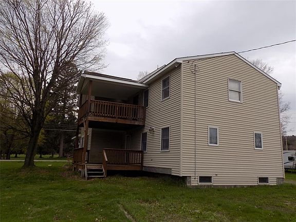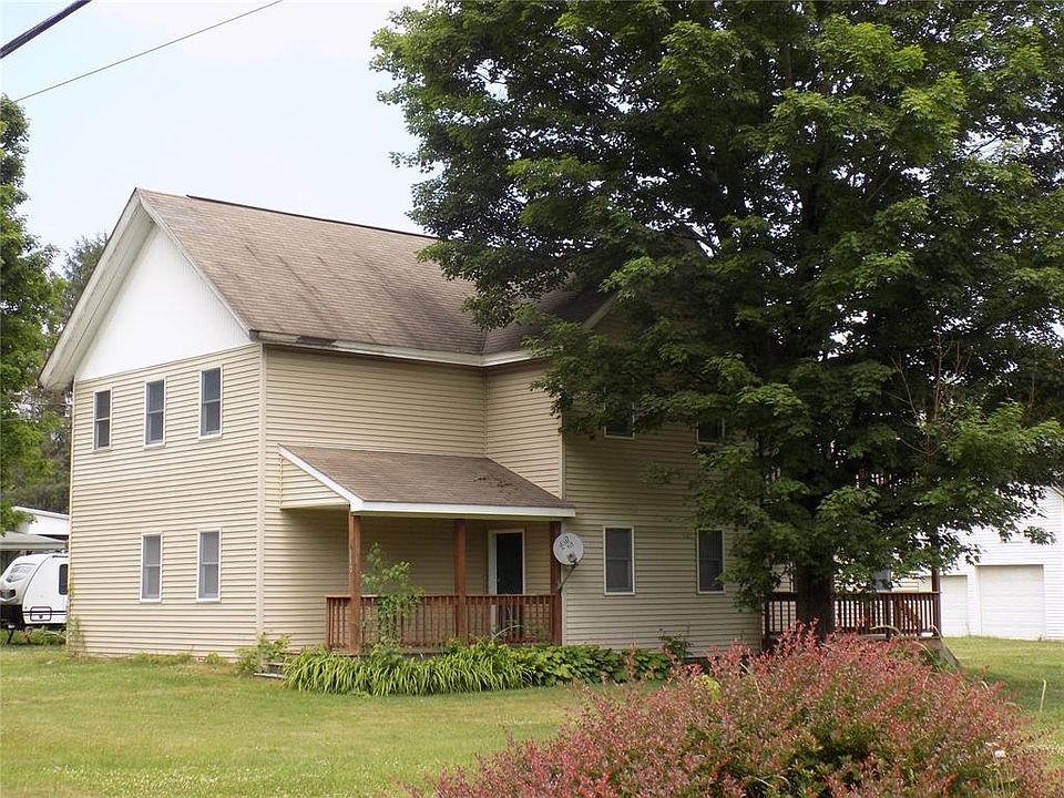 Country Home, Village Conveniences! This 5 bedroom, 3 bath Two-Story home has a newer kitchen with island and newer baths. It has a first floor bedroom and bath, plus it boasts a large in-law apartment with a covered deck. There is a 2 car over-sized detached garage with loft, very large yard nearly an acre, 3 year old furnace, 220 Amp service and plenty of off street parking. Really spacious home! Close to schools, shopping, restaurants, golf course, boat launch & I88 entrance! Centrally located from Binghamton, Norwich & Oneonta!