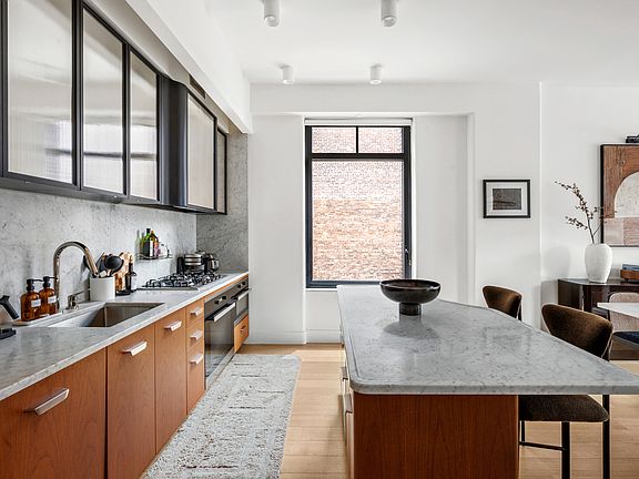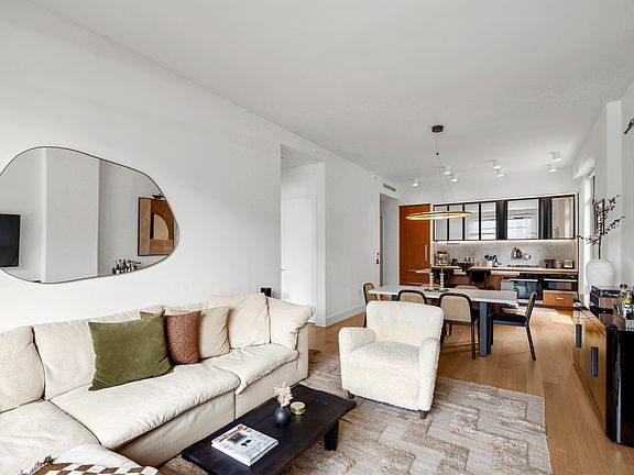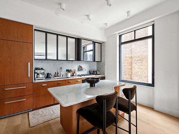 Residence 8A at Greenwich West offers a thoughtfully designed two-bedroom, two-bathroom condominium with both Western and Southern exposures. This newly built condo showcases refined craftsmanship and high-end finishes, blending contemporary style with timeless elegance. Spacious interiors, ample storage, and striking architectural elementslike expansive windows and pristine wide-plank European White Oak flooringcreate a sophisticated yet inviting atmosphere. Parisian architect Sebastien Segers meticulously envisioned and crafted every aspect of Greenwich West's interior design. Step into a welcoming entry foyer that leads to a sunlit, south-facing windowed open kitchen, seamlessly flowing into a spacious 33-foot-long living and entertaining area. Along the gallery hallway, you'll find generous custom storage, including a well-proportioned coat closet, a utility closet for cleaning supplies and essentials, a dedicated laundry closet with an in-unit Miele washer and dryer, and a beautifully integrated pantry conveniently located next to the eat-in kitchen. Experience the luxury of a custom-designed chef's kitchen featuring a generous curved island topped with a honed Carrara marble which continues across the countertops and backsplash, a wine cooler and premium Miele appliances throughout. The open kitchen is complemented by rich walnut and distinctive metal lacquer fluted mirrored casework cabinetry crafted by Molteni&C. The expansive primary suite showcases two generously sized luxury walk-in closets and ample space for a king-sized bed, along with a premium marble-clad bathroom featuring double sinks, engineered-rosewood vanities, polished nickel hardware, and a glass-enclosed shower. Unwind with a relaxing bath in the second bathroom's soaking tub, beautifully accented by exquisitely detailed fixtures. Nestled at the intersection of three of Manhattan's most coveted neighborhoods, Greenwich West in West Soho features 170 condominium residences expertly designed by the Paris-based design team Loci Anima. Residents enjoy an exceptional array of world-class amenities, including a stunning rooftop terrace with panoramic views of the Hudson River and iconic Downtown landmarks. The natural light-filled fitness center, operated by The Wright Fit, features steam rooms for added relaxation. Additional highlights include a cozy Residents' Lounge with a fireplace, an Entertainment Room with a catering kitchen for hosting gatherings, a lush Viewing Garden designed by Patrick Blanc, and a Children's Playroom. Comprehensive services enhance everyday convenience, including a 24-hour attended lobby, a package room with refrigerated storage, an on-site handyman, a live-in resident manager, bicycle storage and an additional Laundry Room for residents' use.