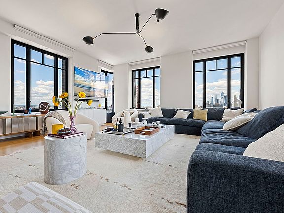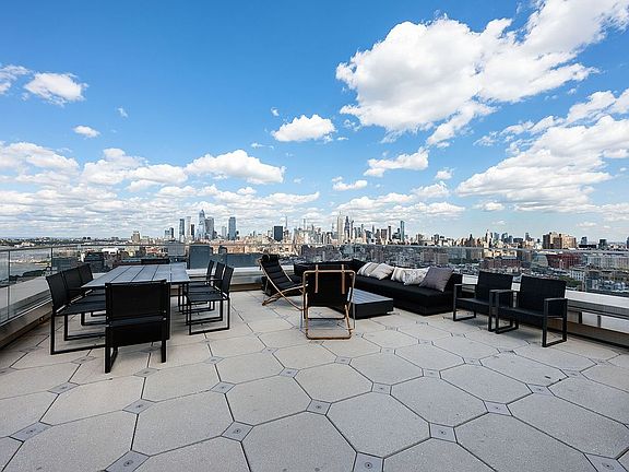 Chic Art Deco Inspired Penthouse Featuring Sprawling Terrace with Breathtaking Skyline and Hudson River Views.