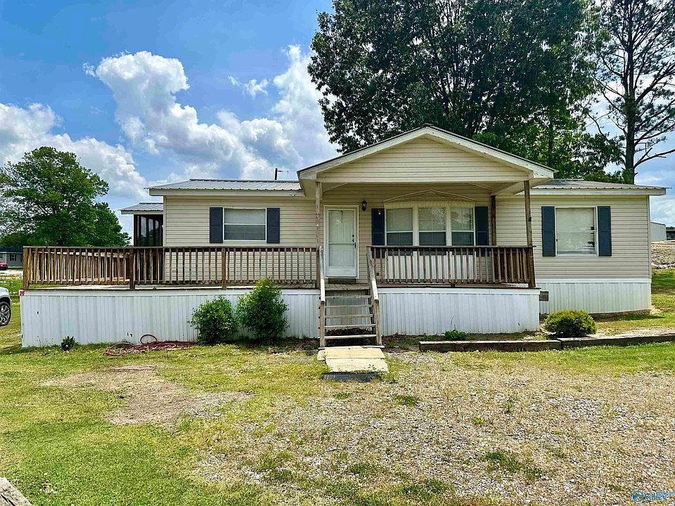 Seeking an affordable way to have a of view of Weiss Lake? Here it is! This mobile home has 3 bedrooms, 2 baths, and is situated on half acre of land+/-. The home has a nice size living room with a fireplace with gas logs, a spacious eat in kitchen. Features a screened-in back porch, a storage building and a covered front porch with a lake view! Conveniently located within minutes to public lake access!