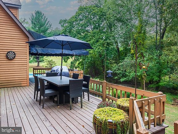 Welcome to your private oasis in award-winning Downingtown Schools. Tucked away on 4 acres, this 5-bedroom, 2.5-bath custom home blends space, charm, and comfort with a setting that’s hard to match. Step inside the elegant foyer with hardwood floors and custom trim, opening to an airy 2-story living room and formal dining room—perfect for entertaining. The remodeled kitchen flows seamlessly into the inviting family room with its stone fireplace, both offering access to expansive decks overlooking the in-ground pool and professionally landscaped grounds. The main level also includes a powder room, spacious laundry, and oversized 3-car garage. Upstairs, the primary suite features a vaulted ceiling, sitting area with jetted tub, and en suite with dual walk-in closets and dressing area. Four additional bedrooms and a hall bath complete the second floor, with walk-up attic storage above. The finished walk-out lower level offers flexible living space for recreation, fitness, or media. Outside, enjoy multiple decks and patios designed for entertaining, all with serene views of a peaceful and private landscape. Conveniently located near parks, shopping, and major roadways, this home delivers the perfect balance of privacy, comfort, and accessibility.