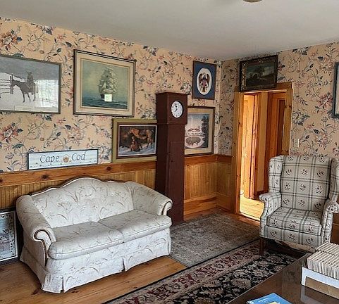 Annual rental or longer if desired. Circa 1848 Antique home, available as year-round rental in the heart of Dennis Port, beginning 10/01/25. This home features warm, spacious rooms, wide plank floors throughout, a large sunny eat in kitchen, large pantry, cozy living room, four bedrooms and three full baths (one is very small). Set on a large, level yard, the home offers plenty of yard space for outdoor gatherings. It's PRIME LOCATION is about a half a mile in either direction to the warm waters of Nantucket Sound, or Dennis Port village, which offers top-rated Cape Cod restaurants, shopping, and one of Cape Cod's most beloved ice cream shops. Square footage reflects total for house; landlord will be retaining use of approx 500 square feet for personal belongings, leaving about 1,850 sq. ft. of living space for tenants. Guest house and shed not included in the rental. Plenty of storage for tenant in basement. House to be rented partially furnished. Very steep stairs to second floor, typical of this age home. Two bedrooms on first floor, two up. Coin operated laundry, but tenants to recoup all quarters used.