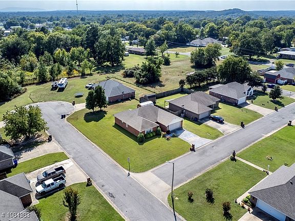 This charming 3-bedroom, 2-bath home sits in a beautifully kept neighborhood in Muldrow. It features a spacious living room and a desirable split floor plan for added privacy. The updated kitchen has been freshly painted and includes granite countertops, a large island, and plenty of cabinet space—perfect for family gatherings or entertaining. The master suite offers a generous walk-in closet and a relaxing bath, while the additional bedrooms are also comfortably sized with walk-in closets. The exterior is nicely landscaped, adding to the home’s curb appeal. Out back, you’ll find a newer building that could serve as a workshop, hobby space, or extra storage. Situated on a corner lot and just under 1,500 sq. ft., this home has been very well cared for and is move-in ready!