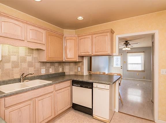$5,000 PRICE REDUCTION!! MOTIVATED SELLER SAID TO BRING US AN OFFER! NEW CARPET, FRESH PAINT AND NEW BATHROOM FLOORING! WHY RENT WHEN YOU CAN OWN! Make your appointment today for this cute 2 bedroom home, that includes a HOME WARRANTY! Large living room with gas fireplace, and ceiling fan. Kitchen includes a breakfast bar, backsplash, built in oven and microwave, and all appliances including a trash compactor are included. Enjoy cooking with the built in gas range, that comes with a retractable exhaust fan. This adorable kitchen opens up to a dining room with floating laminate, and ceiling fan. You will love the ceiling fans in both bedrooms also. Relax on the composite deck out back, or maybe work on your projects in the over size shed that is insulated, has a work bench and electricity. Backyard is completely fenced in. Partial unfinished basement with laundry (washer and dryer that stay), work bench and water softener. Buyers and buyers' agents to verify all information in the MLS.