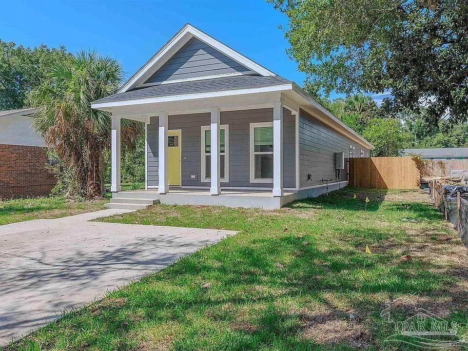 !!BUILDER OFFERING RATE BUY-DOWN!! Welcome to 110 E Bobe Street, a newly built Pensacola gem where modern comfort meets thoughtful design. Tucked away on a quiet cul-de-sac just minutes from Downtown, this 3-bed, 2-bath home delivers the perfect blend of style, function, and effortless everyday living. Step inside and instantly feel the warmth of the bright, open-concept layout. Oversized luxury LVP flooring flows throughout, setting a clean and seamless foundation for the home’s contemporary aesthetic. The living and dining areas connect naturally to the show-stopping kitchen — complete with custom wood cabinetry, natural-stone quartz countertops, a large center island, and sleek Whirlpool appliances. It’s the kind of kitchen that makes hosting feel easy and cooking feel inspiring. The private owner’s suite sits at the rear of the home, offering a peaceful retreat with soaring ceilings, a spacious walk-in closet, and a spa-inspired bath featuring a walk-in tiled shower. Two additional bedrooms provide flexibility for guests, a home office, or a cozy nursery. Step outside, and you’ll find one of the home’s standout perks: a fenced backyard — a rare bonus for new construction in this area. It’s an inviting space for evenings on the patio, pets, gardening, or weekend gatherings. With a two-car driveway, energy-efficient systems, a gas tankless water heater, and no HOA, the property combines convenience with low-maintenance living. Whether you're a first-time buyer, downsizing, or simply craving a fresh, modern space close to the heart of the city, this home offers the refined finishes and livable flow you’d expect to be showcased — all wrapped into one beautifully designed package.