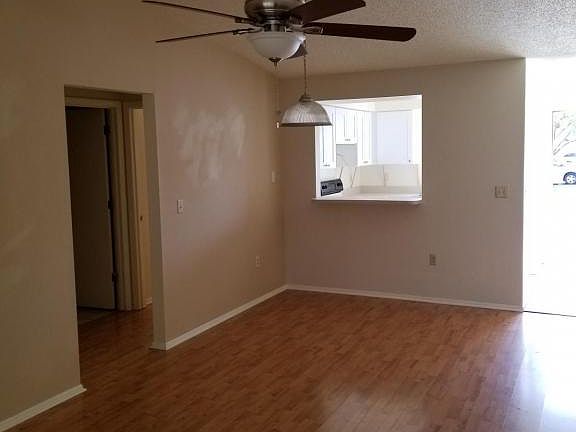 Ground Floor Large 3 Bedroom 2 Bathroom. Utility Room with washer and dryer hookups. Split bedroom plan with faulted living room ceiling. Central AC. New Kitchen and Bathroom Cabinets, Laminate and Tile Flooring. Available September 1 2025