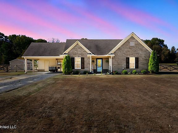 Nestled on 2.83 acres in Sarah, this charming 3 bedroom 2 bathroom home offers peaceful country living with plenty of space inside and out, featuring an inviting front porch, a bright living room with vaulted ceilings, a well-appointed galley kitchen that flows into the dining area, and a private primary suite with a large bath and walk-in closet; the additional bedrooms are generously sized, and the laundry room provides extra storage and convenience. Outside, you'll find a spacious covered parking area, an extended patio perfect for entertaining, a fenced backyard section, and a 12x20 storage building with electricity, along with wide open yard space ideal for play, gardening, or future projects. With 1416 square feet of well-maintained living space and beautiful land surrounding you, this property offers the perfect blend of comfort, privacy, and room to grow.