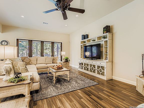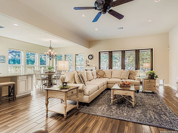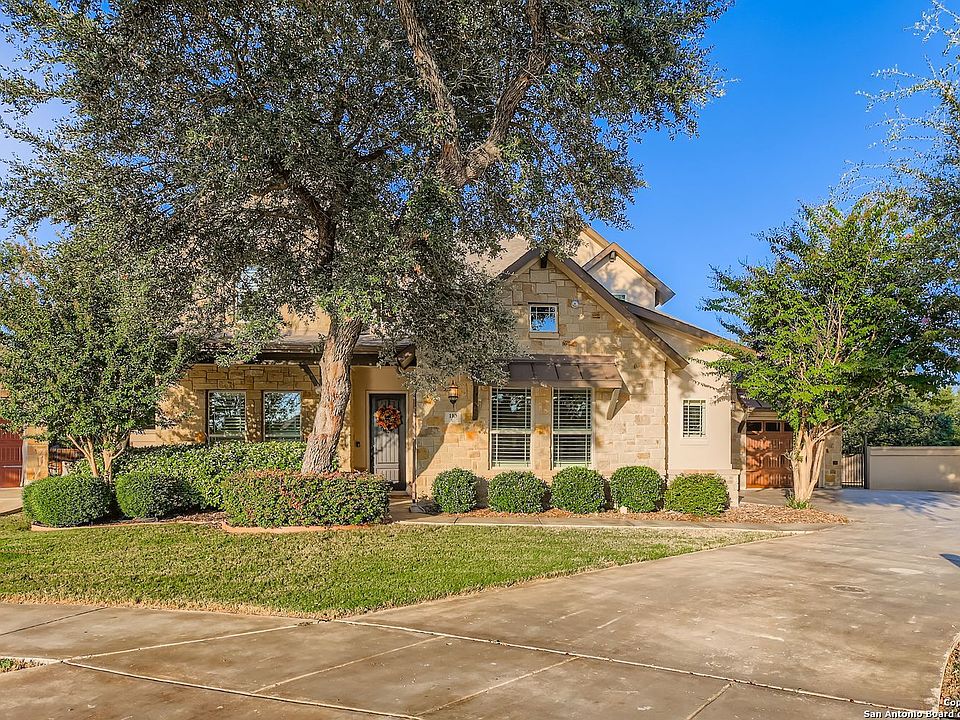 Experience refined living in this exquisite home on an oversized lot within the prestigious gated community of The Woods of Boerne. Offering 4 bedrooms and 3.5 baths, this residence features an open floor plan with expansive living and kitchen areas designed for entertaining. Custom details include remote shades and elegant finishes throughout. The spacious primary suite boasts a spa-inspired bath with walk-in shower, whirlpool tub, and large walk-in closet. Secondary bedrooms each include walk-in closets, ensuring ample storage. A second living area ustairs and a 3 car garage complete this exceptional home.