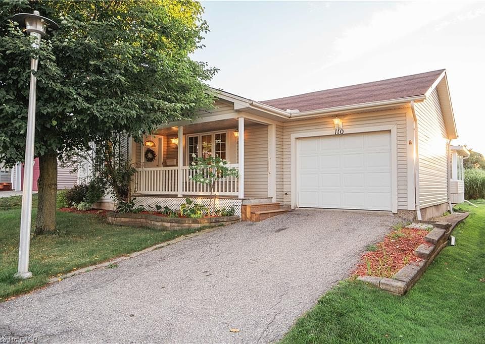 Welcome to 110 Ethel Road between Waterloo and St. Jacobs in the desirable 55+ Adult Living community at Martin Grove Village. This is a land lease property, which affords the buyer the opportunity to purchase a beautiful bungalow for much less than if it were on owned land. This spacious carpet-free home offers two bedrooms, two bathrooms and a gorgeous 4-season Sun Room, the only one in this neighbourhood! This home is perfectly move-in ready and has been updated recently with the following; freshly painted throughout the main floor in a warm winter white, new high quality luxury vinyl plank flooring on the main floor, and the kitchen has been refreshed with a new sink, tap and a lovely contemporary countertops that coordinate beautifully with the wall colour. Other updates include gas hot water heater (owned, not rented, 2020), air conditioner (2019), roof shingles (2016). Excellent open concept layout offers such a great space for hosting your gatherings with friends and family. Partially finished basement has loads of potential for additional living space. This lovely home must be seen in person to fully appreciate all it has to offer. Will you say yes to this address? OFFERS ANYTIME! Flexible closing, and could be immediate. Click on the Multi-Media Link for More Photos and the Floor Plan.