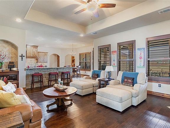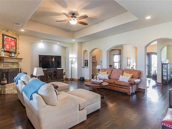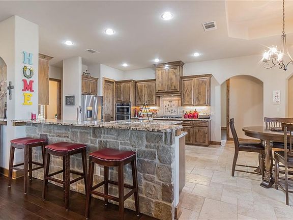 Custom built stone home on one acre lot. Large island kitchen with granite counter tops, gas cook top, built-in oven, microwave and custom stained alder wood cabinets. Stainless steel Whirlpool appliances. Travertine tile in kitchen and baths. Formal dining room and breakfast area. Spacious great room with stone corner fireplace, wooden shutters, wood floors and raised ceiling. Luxurious master suite walk through shower. Over sized attached three car garage. A seperate detached two car garage.
