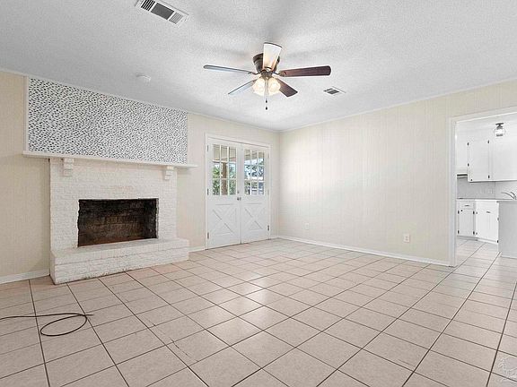 WELCOME to this charming 3-BEDROOM, 2-BATH BRICK PLUS BONUS ROOM HOME with 1,636 SF of living space on a sprawling 0.47-ACRE LOT in the heart of Pensacola! Built in 1969 and thoughtfully updated with a nearly-new ROOF (2022), WATER HEATER (2022), and fresh interior paint, this home blends classic character with modern comfort. Step inside to a light-filled GREAT ROOM anchored by a painted-brick FIREPLACE. French doors open to a versatile BONUS ROOM, ideal as an office, playroom, or hobby space with a large picture window that fills the space with natural light. The EAT-IN KITCHEN features abundant cabinetry, a built-in oven, pantry storage, and a cheerful breakfast nook framed by a bay window overlooking the backyard. The PRIMARY SUITE offers dual closets and an ensuite bath with a step-in shower, while two additional bedrooms share a full hall bath with a single vanity and tub/shower combo. Brand-new carpet, updated lighting, and modern ceiling fans add fresh appeal throughout. Enjoy mornings or summer BBQs under the COVERED BACK PATIO with a ceiling fan, perfect for those summer BBQs or fall get-togethers with family and friends. The expansive yard, shaded by mature trees, provides endless possibilities—plenty of room for a pool, garden, or workshop. A spacious 2-CAR side-entry GARAGE with paneled walls provides ample room for both vehicles and storage space, while the long driveway offers ample parking for boats, RVs, and guests. Nestled on a quiet street just down the street from a park, and minutes to schools, shopping, dining, downtown Pensacola & Pensacola Beach, this property offers LOCATION, LIFESTYLE & VALUE all in one. Don’t miss your chance to make this versatile Pensacola home your own!
