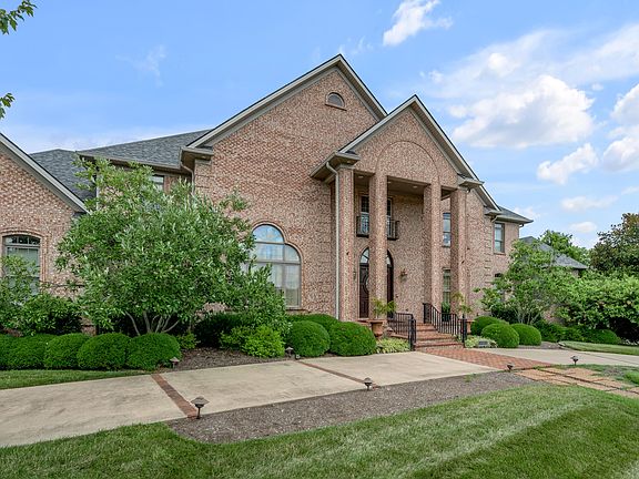 A golfer's delight, located in Harrods Ridge, on a one-acre lot, 110 Golf Club is a 9800+ sq feet Estate. It boasts 6 bedrooms and 8 and 1/2 baths, with a four-car oversized garage. From the circular driveway, you are met at the front doors with an impressive double spiral staircase. The formal dining room to the left is a gracious two-story barrel ceiling with room for a 10 person dining table. On the right side is a peaceful piano/ living room. The kitchen is a chef's dream, with Bosch double ovens, a microwave, and a gas stove top, with a built-in Sub-Zero refrigerator, an eat-in area, with a back deck overlooking the swimming pool, Keene Golf Course number 11 hole. The family room/ den is two-story with floor to full wall windows and eloquent window treatments, an impressive mirror, and a gas fireplace. The den also has leads to a large covered back deck, including a gas fireplace, with the ability to use in both winter and summer. The first-floor primary is expansive, including a sitting area, office space, a gas fireplace, also with access to the back deck. The primary bath includes a two-person shower, dual sinks, a fireplace, a jacuzzi and a large walk-in closet! Finishing out the first floor includes a powder room, and large laundry/ craft room and a mud room leading to the four-car oversized garage. The 2nd floor features 4 suites, all including their own en-suite and walk-in closets. One of the upstairs rooms is also a second-floor primary, with a Gas fireplace, a sitting area, two sinks, shower and a large jacuzzi tub. The basement is like stepping into your own private country club, including a wine cellar, full kitchen, bedroom suite, area for game night, gas fireplace, pool table, exercise room, and even a children's playroom. There is a second laundry room down by the pool, including ladies' and gentlemen's restrooms right off the pool. The basement also includes an About Golf simulator room, with bar counters. The outdoors includes an in-ground saltwater, heated with a cover swimming pool, with an outdoor kitchen that includes, Viking grill, burner, warming drawer, sink, and refrigerator. The entire yard is fenced and even includes a swing set for the kids!
