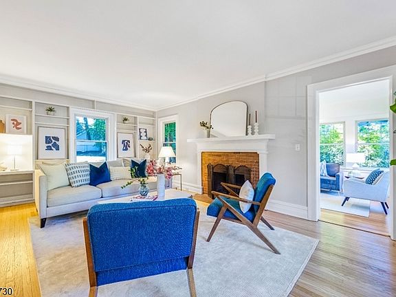 Welcome to this beautifully refreshed Montclair home that perfectly blends classic charm and modern updates. This spacious 5-bedroom, 2 full bath, and 2 powder room residence has newly painted 1st & 2nd floors and features refinished hardwood floors that bring warmth and elegance to every room. The inviting main level offers a generous living room, with built-ins, and the formal dining room which are ideal for entertaining or everyday living. A large eat-in kitchen with three exposures boasts stainless steel appliances and a wet bar immediately adding to the ease for hospitality in this home. There is access to the backyard for seamless indoor-outdoor enjoyment. Upstairs, on the 2nd floor you'll find large comfortable bedrooms with abundant natural light, including a primary suite with its own large sun filled sitting room. This room is a perfect location for the future primary bath and dressing room. Up on the 3rd  floor you will find two additional bedrooms, storage rooms and a full bathroom. In the finished basement find a half bath and room for recreation, exercise and work-from-home space. Outside - enjoy an oversized level yard. Bonus - 4-car tandem garage!  Located on one of Montclair's most sought-after streets, this home is just moments from Watchung Plaza, local shops, restaurants, schools, and NYC transportation. The Classic Montclair Home you've been waiting for with its fresh updates and spacious layout - 110 Gordonhurst Ave is ready to welcome you Home.