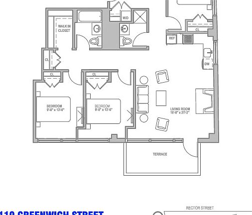 Spacious true 3 Bedroom/2 Bath with a large balcony! Pictures are reflective with units with similar finishes. More pictures coming soon. 110 Greenwich Street is nestled in the heart of the Financial District just minutes from TriBeca and the Seaport, as well as Battery Park, 1 World Trade, and Brookfield Place! The buildings have been recently renovated to ensure the highest quality of living for its residents-with top of the line upgrades to each apartment as well as all common areas. 9th floor spacious 3 bedroom with a private terrace for entertainment or recreational use! Apartment Features: - Massive private terrace with a view -Chef's Kitchen -Laundry in unit -Top of the line Stainless Steel Appliances by Bertazzoni, a Blomberg Refrigerator, Whirlpool Microwave with Fan and Dishwasher. - 3 queen sized bedrooms -10 Foot Ceilings to Allow Fantastic Light Throughout -Gorgeous oak floors throughout with a weathered gray finish accentuate this chic loft like home -Spa like Porcelain Bathroom with a Double Sink Vanity -Ceiling Track and Recessed LED lighting -Closet space Throughout Building Features: -Doorman -Elevator -On-site laundry facilities -Gym -Beautiful common roof deck Commuting has never been easier-enjoy the convenience of having the 2, 3, 4, 5, A, C, E, J, Z, and R trains all just around the corner. 3 months F on 18