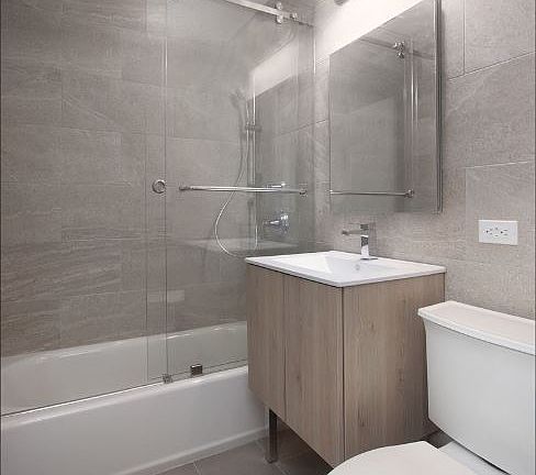 Luxuriously renovated loft with a split two bedroom layout, soaring ceiling heights and beautiful condo level finishes. This chic sun filled corner home featuring oversized windows with amazing light. Exposed brick walls and oak floors with weathered gray finish accentuate the space. The spa like porcelain bathroom has a double sink vanity and Kohler suite of fixtures. The modern chef's kitchen has a Caesar stone counter top with a marble back splash, top of the line stainless steel appliances, including Bertazzoni range, Whirlpool microwave and dishwasher and a Blomberg refrigerator. There is an in unit Bosch washer/dryer. There is built in ceiling track and recessed LED lighting, storage and closet space. 110 Greenwich Street is a loft doorman building with an on-site super, laundry facility, gym and beautiful common roof deck featuring incredible views of the World Trade and lower Manhattan. The building is located in the in the heart of the Financial District near World Trade Center and Brookfield Place, just 1 block north of Rector St. and 2 blocks from Battery Park City. 110 Greenwich Street is surrounded by over 10 subway lines including the Fulton Center transportation hub provides access to 2, 3, 4, 5, A, C, E, J, Z, and R trains.