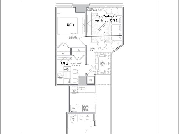 August move in Video available upon request Enjoy soaring 14ft ceilings while entertaining in this luxuriously renovated 1 -bedroom plus home office convertible 3 bedroom loft apartment with lots of storage and the ease of an in unit washer/dryer. Flex room wall already built in. This modern elegant residence has condo level finishes and oversized windows. This chic loft like home is accentuated by weathered gray oak flooring, abundant storage and .recessed LED lighting. The home features a gorgeous state of the art chef's kitchen with a Caesar stone counters, top of the line stainless steel appliances by Bertazzoni, Blomberg refrigerator, Whirlpool microwave with fan and dishwasher. Spa like porcelain bathroom with double sink vanities, suite of Kohler fixtures and a linen closet. 110 Greenwich Street is an elevator building with an on-site super, complimentary gym, beautiful common roof deck and laundry facilities. Commuting has never been easier as 110 Greenwich is surrounded by multiple transportation options including access to the 2, 3, 4, 5, A, C, E, J, Z, and R trains all just around the corner. Images are not reflective of actual of actual apartment.