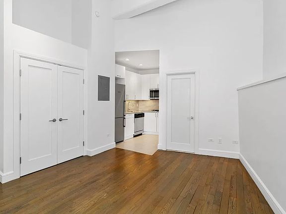June move in. Immediate NO FEE HIGH CEILING STUDIO ! Enjoy living in this renovated Loft studio with high end condo level finishes! This modern, elegant residence features soaring 14' ceilings. exposed brick, large windows facing west, and wide weathered gray oak finished flooring. The modern kitchen has a Caesar stone countertop with marble backsplash and is equipped with top-of-the-line stainless steel appliances, including Bertazzoni range, Whirlpool microwave with fan, dishwasher and Blomberg refrigerator.
