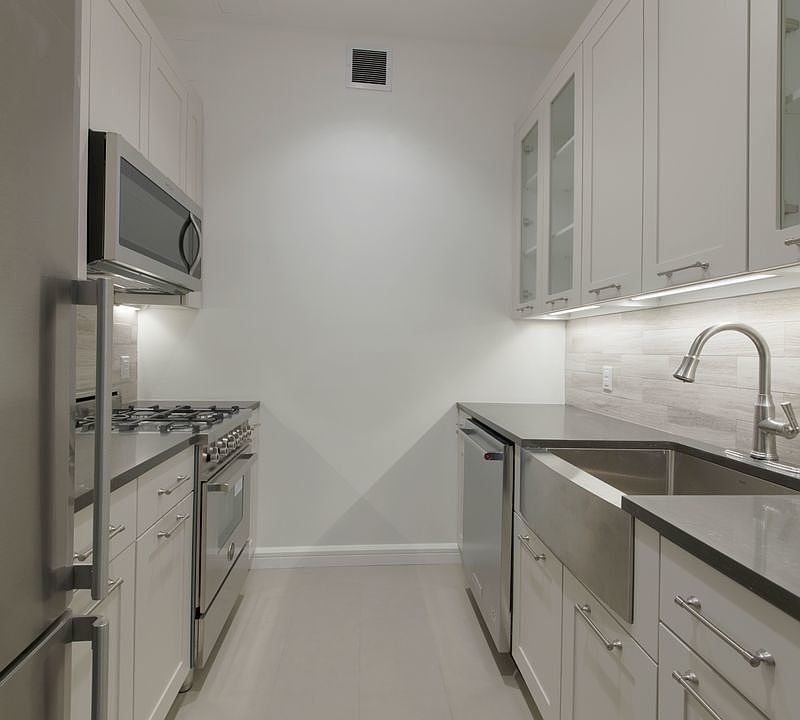 Luxuriously renovated 1 bedroom plus mezzanine sleeping loft/ home office with condo level finishes. This modern, elegant residence features soaring 14' ceilings and over sized windows. The state of the art renovations include a gorgeous chef's kitchen with a breakfast bar seating at the Caesarstone waterfall counters. Enjoy, top of the line stainless steel appliances by Bertazzoni, a Blomberg refrigerator, Whirlpool microwave with fan and dishwasher. Gorgeous oak floors throughout with a weathered gray finish accentuate this chic loft like home. The spa like porcelain bathroom has a double sink vanity and Kohler suite of fixtures. There is built in ceiling track and recessed LED lighting, storage and closet space. 110 Greenwich Street is a doorman elevator loft building with on-site laundry facilities, gym and beautiful common roof deck. The building is located in the in the heart of the Financial District near World Trade Center and Brookfield Place, just 1 block north of Rector St. and 2 blocks from Battery Park City. 110 Greenwich Street greatly benefits from its close proximity to multiple transportation options. The Fulton Center transportation hub provides access to 10 subway lines including the 2, 3, 4, 5, A, C, E, J, Z, and R trains.