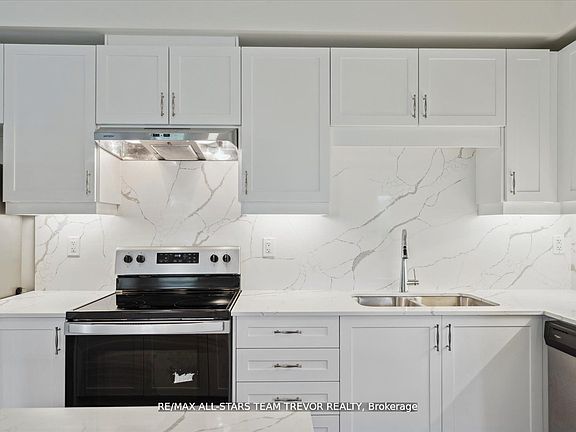 Laminate flooringSmooth ceilingsUpgraded cabinetsQuartz countertopsQuartz backsplashFunctional islandSoft-close doors