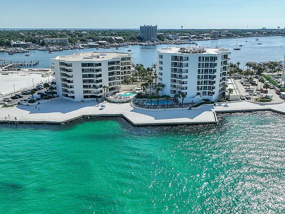 Three Month Minimum Rental Period. Dedicated Garage Parking Spot and Storage. SIRS complete and all assessments paid. Two Master Suites. Beach or boater's delight. Gulf, East Pass and harbor views. Fireworks, air shows and incredible night light views from an expansive balcony. Perched on the sixth floor at the very tip of Holiday Isle, this gracious residence offers panoramic views that sweep from the Destin Harbor to the sparkling gulf waters of the East Pass. Walls of floor-to-ceiling glass and a generous balcony that spans the full width of the unit invite both sunlight and sea breezes into nearly every corner, creating a serene waterfront sanctuary. The spacious layout unfolds with ease, offering a large living and dining area that is seamlessly connected to a well-appointed kitchen, complete with granite countertops, stainless steel appliances, a generous bar, stainless steel appliances, a generous bar, and a dedicated wine bar, all designed for effortless entertaining. Two private master suites, each with its own ensuite bath, provide luxurious accommodations for owners and guests alike, while a third bedroom and full bath offer additional flexibility. Resort-style amenities elevate everyday living, featuring an exclusive owners-only seasonally heated pool, hot tub, fitness center with sauna, a club room for events, as well as a private stretch of white-sand beach. A covered garage space right by the elevator entrance and dedicated storage room add convenience. A private marina just across the street offers deep-water boat slips for sale, for boaters who want to enjoy Destin's famed waterways. No boat, no worries, as you can call the boat taxi to pick you up at the East Pass Marina dock for quick trip across the water to award winning, boat-to-table seafood restaurants and night life on the harbor. East Pass Towers II is a secure, gated building renowned for its quiet, residential atmosphere with a 3-month minimum rental period. Featuring thoughtful updates, the condo association has proactively nearly completed all needed maintenance and improvements and all assessments have been paid by the seller. From fireworks and air shows on summer nights to tranquil mornings watching boats or dolphins glide by, this is waterfront living at its finest. Destin Executive Airport is just 2.3 miles away for all the pilots wanting to escape the beach or if you prefer charter services. Next to East Pass Towers and nearing completion of improvements is Norriego Point Beach Access and Park where, according to the City of Destin website, will include ADA accessible restrooms, showers, drinking fountains, environmental educational signage, bike racks, boardwalk, dune crossovers, and vehicle parking.