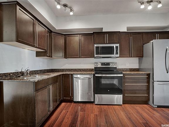 Bright & Spacious Corner Condo with Oversized Patio! Enjoy low-maintenance living in this beautifully maintained 1,216 sq ft, 2-bedroom, 2-bathroom corner unit with 1 underground heated parking stall! This bright condo offers style, comfort, and convenience. Designed with a south-facing layout, this condo is flooded with natural light and features a large private patio complete with a natural gas BBQ hookup—perfect for entertaining or relaxing outdoors. Step inside to find an open-concept living space with granite countertops, stainless steel appliances, and lots of counter top space. The primary bedroom includes a walk-through closet leading to a private 3-piece ensuite with a large walk-in shower. You’ll also appreciate the in-suite laundry with additional storage, & separate storage area in the heated underground parkade. Parking is a breeze with an oversized underground stall, and comfort is guaranteed year-round thanks to your own forced-air natural gas furnace and central air conditioning—an uncommon but welcome feature in condo living. Located in a clean, well-kept building, this unit is just minutes from all the essentials: shopping, restaurants, coffee shops, and schools. You'll love the easy access to scenic paved walking trails and green space throughout the neighborhood. Quick possession available call your favorite Realtor to book a private viewing today!