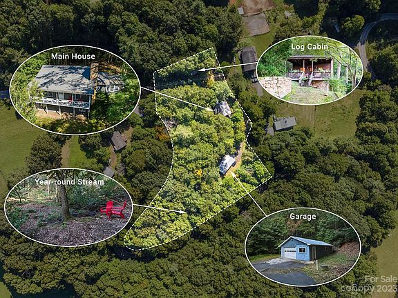 Nestled on 3+/- acres, situated at the end of a drive, this property features a home, log cabin, and a detached garage/workshop! The main home has a living room that boasts vaulted ceilings and a fireplace. There is a generously sized bonus room with a half bath, ideal for guest accommodations or an office. Walk downstairs to a light-filled basement, ready to be finished or use it as is. The log cabin is equipped with a kitchen and full bath, perfect for an artist's studio or rental unit. There is electricity in the detached garage. The property has cleared areas for gardening and a serene wooded path along the creek that leads to a private clearing with a firepit. Home and cabin are spring-fed with a high-end filtration system. Metal roofs with gutters were installed on the home and cabin in 2022. Bonus room and half bath appear to have been finished without permits, buyer to confirm. Virtual tour is available! Also shown as MLS #4067065. Tenant in cabin, please do not enter.