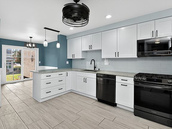 Beautifully maintained 3-bedroom + loft, 3.5-bath townhome with finished basement and 2-car garage in desirable Lemont. Main level features soaring ceilings, fresh paint, rich hardwood floors, gas fireplace with custom wood mantel, and bright dining area. Kitchen remodeled in 2023 with ceramic tile flooring, quartzite counters, stainless steel appliances, garbage disposal, and a large walk-in pantry plus additional pantry closet. Eat-in kitchen leads out to a private concrete patio with a new sliding door (2024). Updated half bath (2023) and direct garage access complete the main floor. Upstairs offers a versatile loft, 3 spacious bedrooms, a primary suite with custom walk-in closet and updated 2022 private bath with luxury tile shower and quartz vanity with double sink, plus a second full bath. Finished basement (2023) includes custom wet bar, full updated bath 2022, epoxy floors, storage, and laundry/utility sink. Great location close to expresways, downtown Lemont, shopping, Metra, parks, dining, and schools.